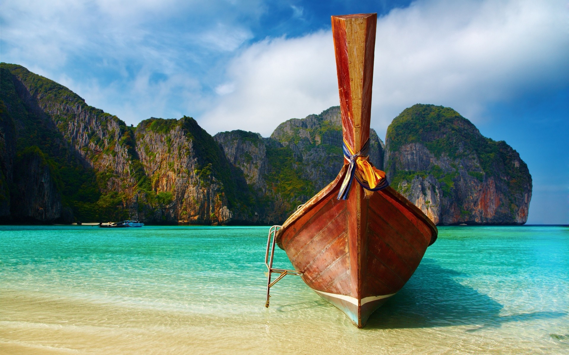 Palmiye ağaçlarıyla birlikte lagünün tropikal manzarası
