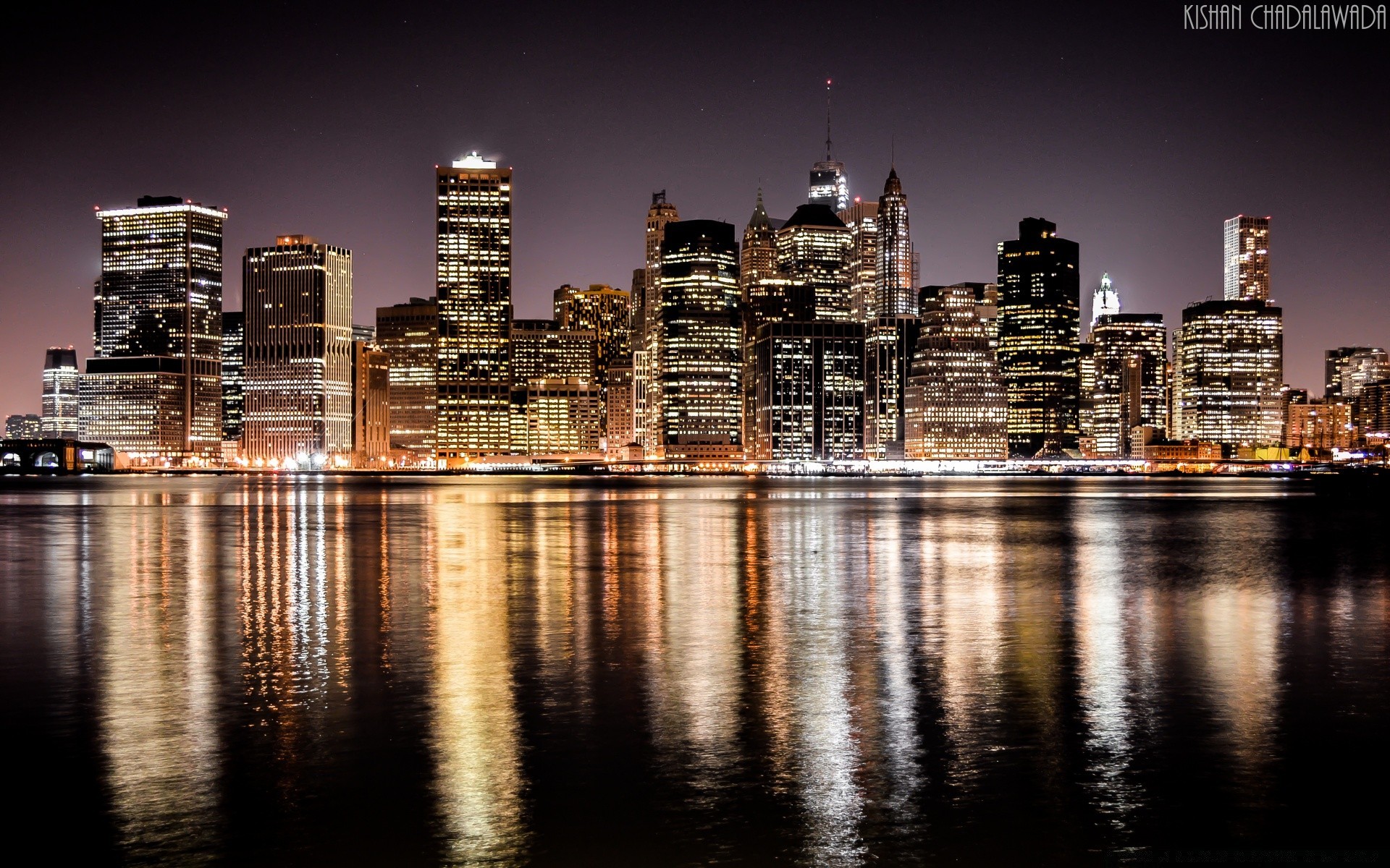 Mavi projektörlerin ışığında kentsel gökdelenler