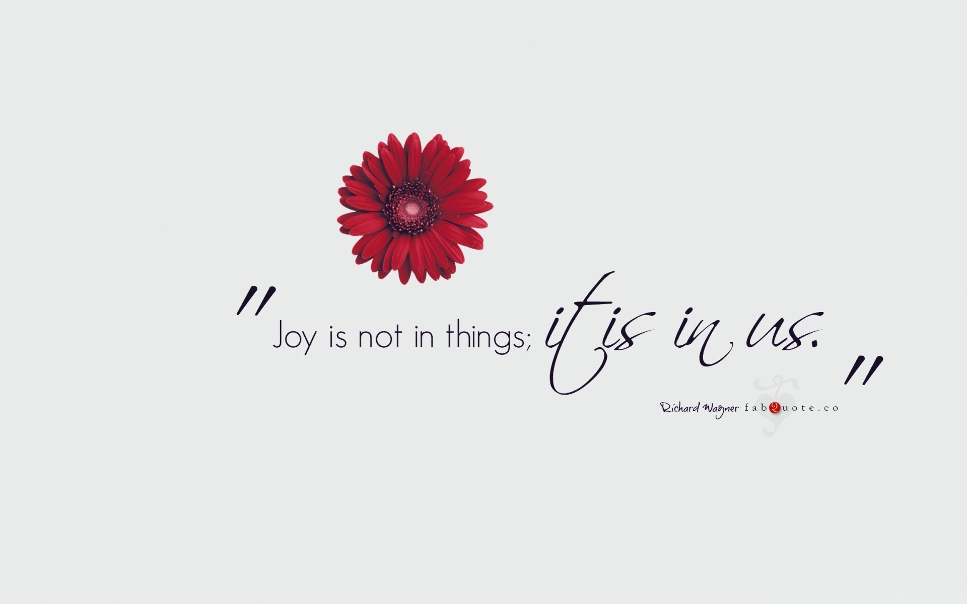 Kırmızı gerbera çiçeği ve gri bir arka plan üzerinde siyah bir yazıt