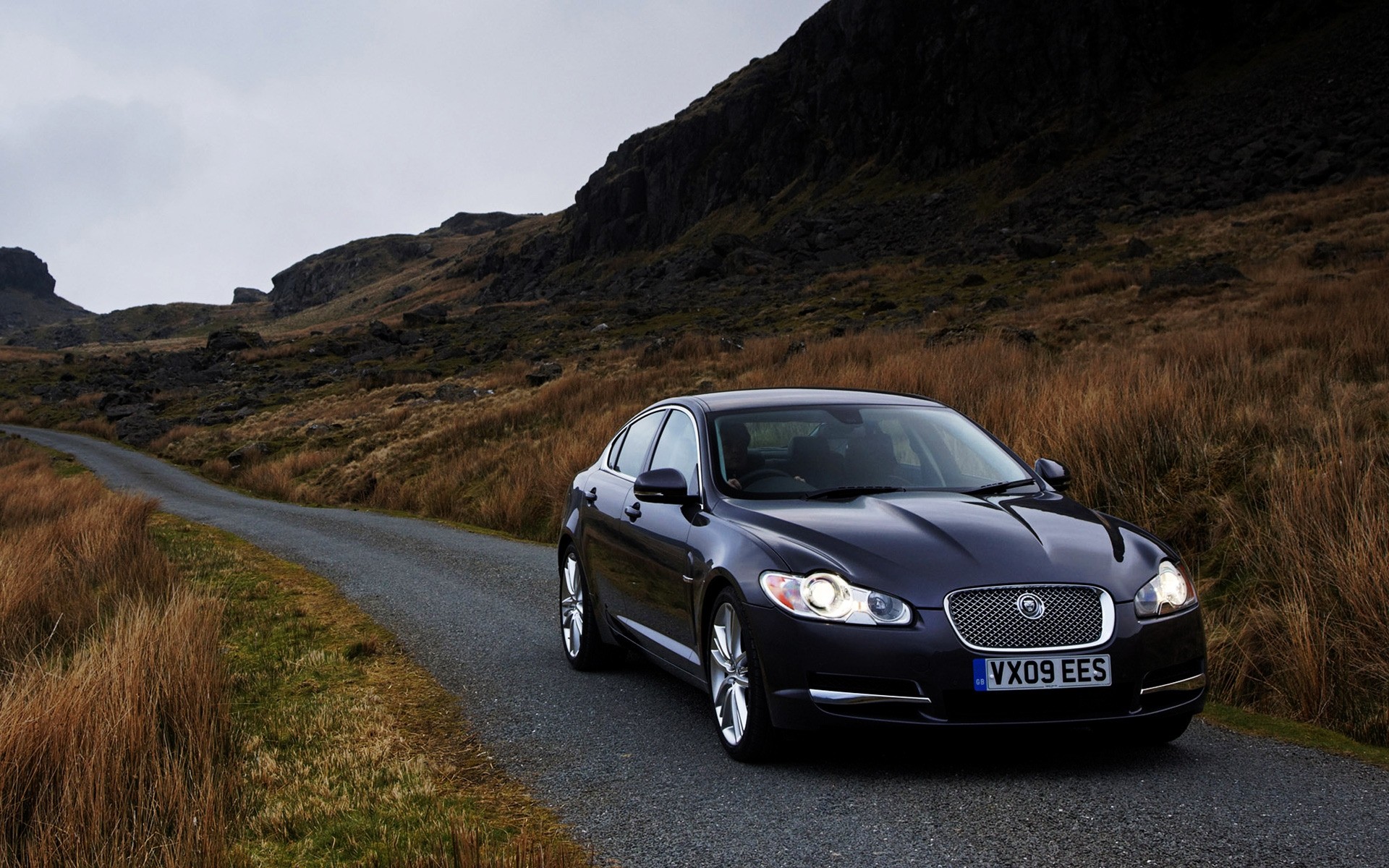 Dağ geçidinin ortasında şık bir araba sürüyor