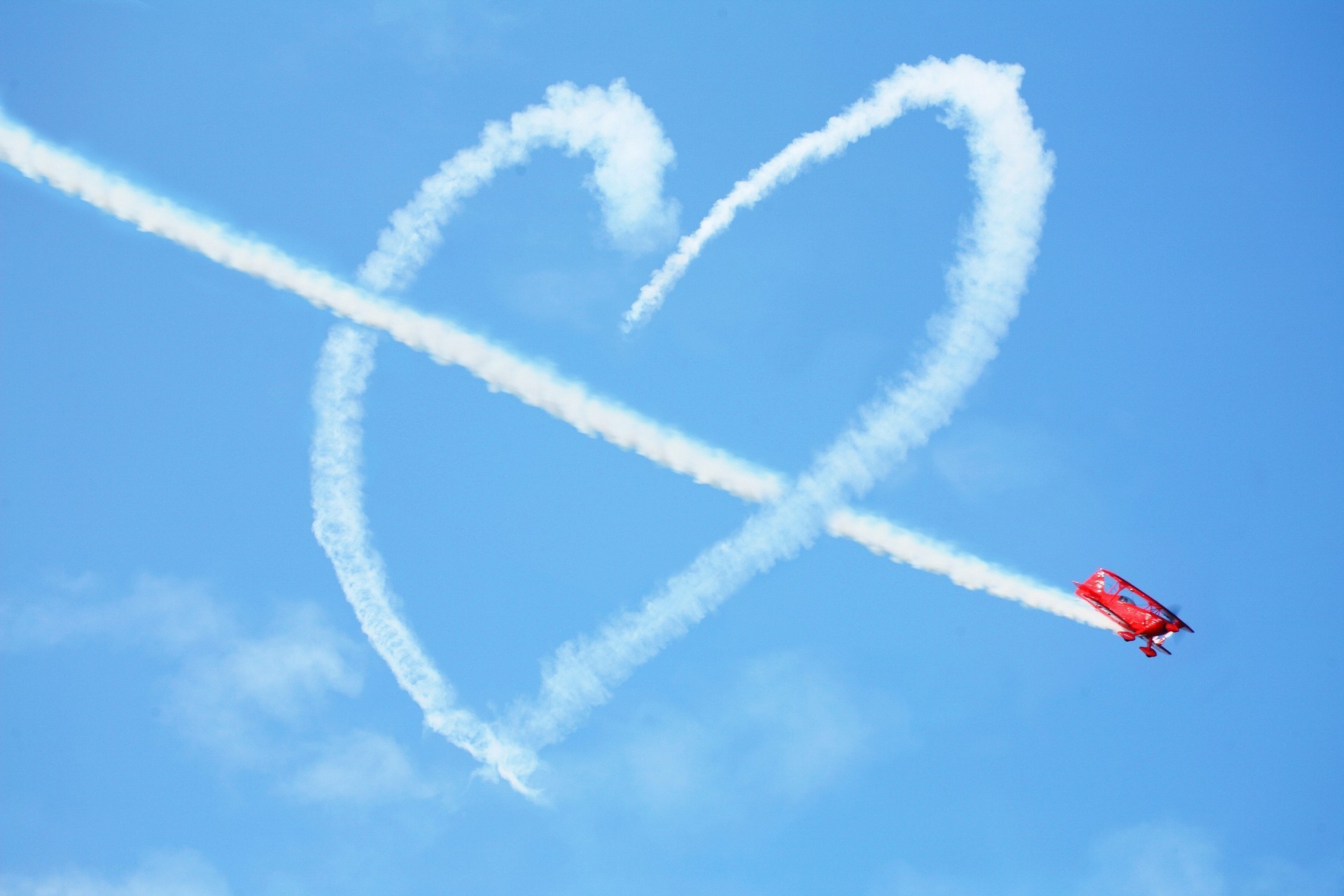 Gökyüzündeki kalbi çizen kırmızı bir uçak