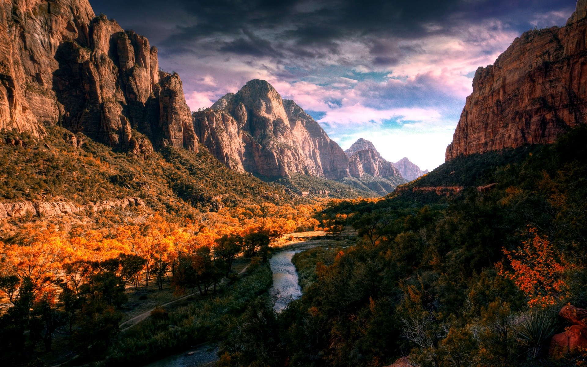 Kanyonlar arasında akan sonbahar nehri