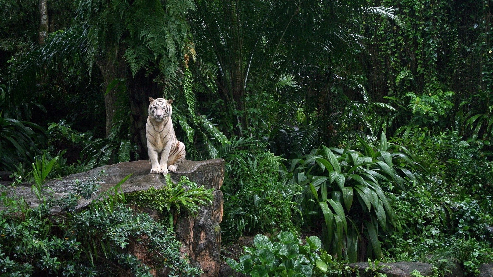 Yeşil ağaçların arasında güzel beyaz kaplan