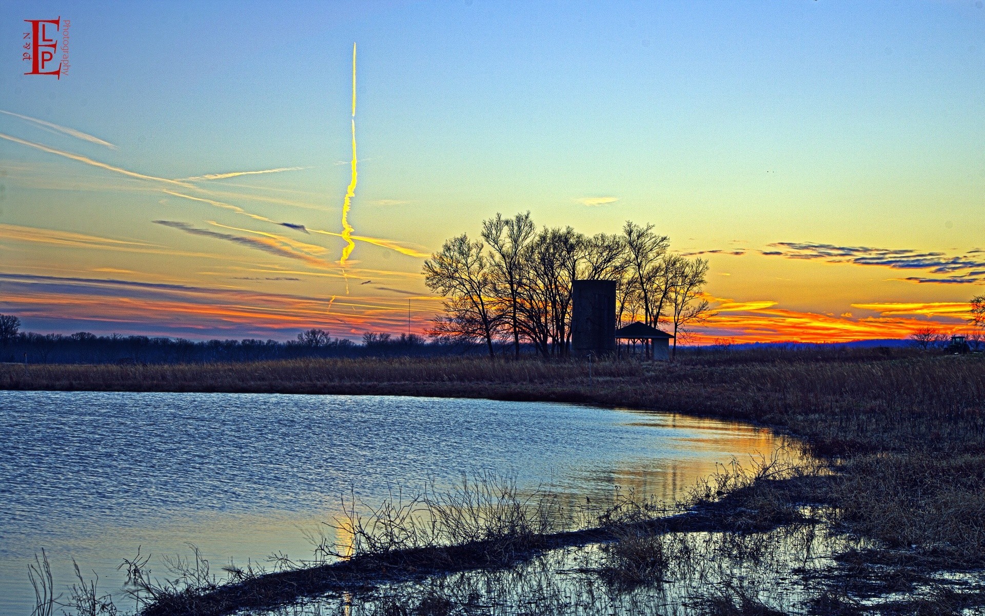 Gölün arka planında sabah şafağı