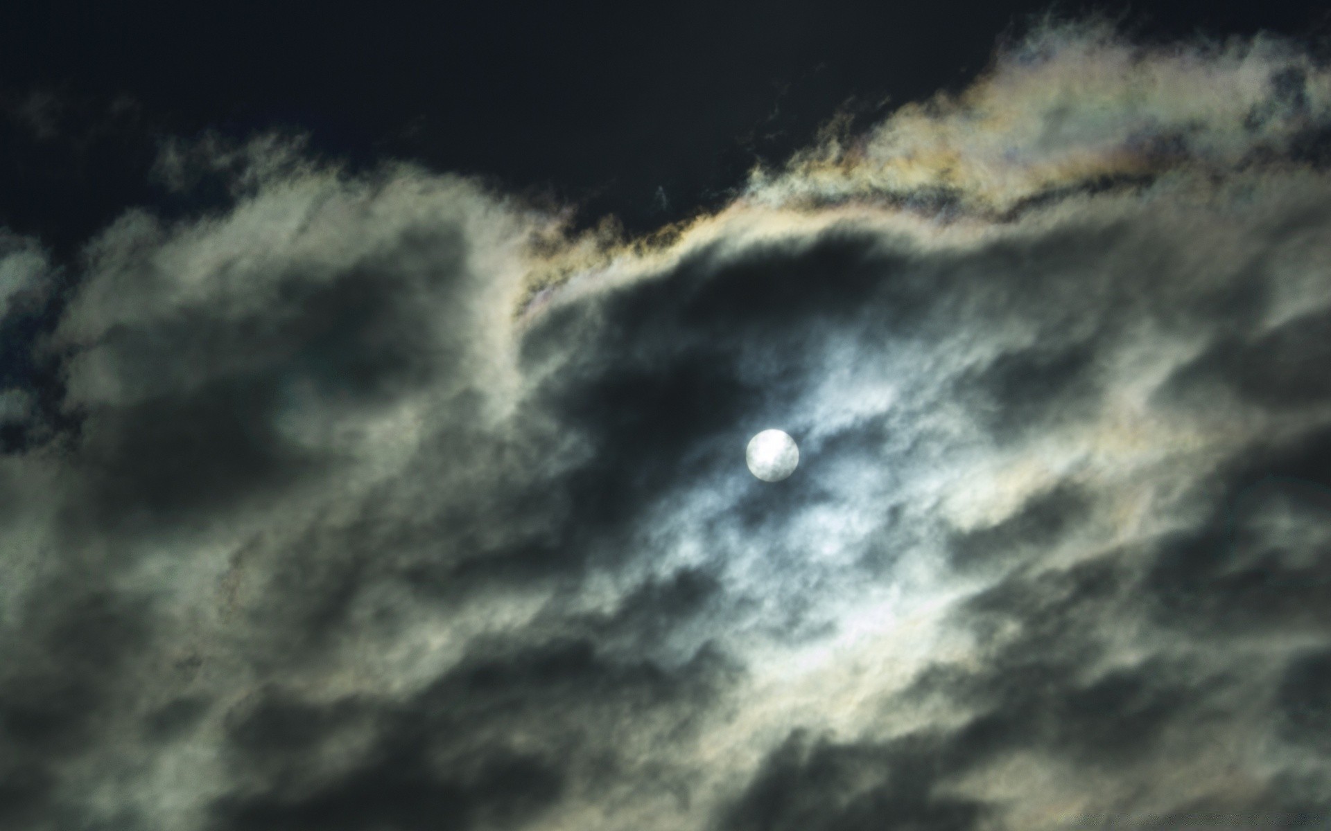 Bulutlarla dolu kara gökyüzü dolunayı kapatmak üzeredir
