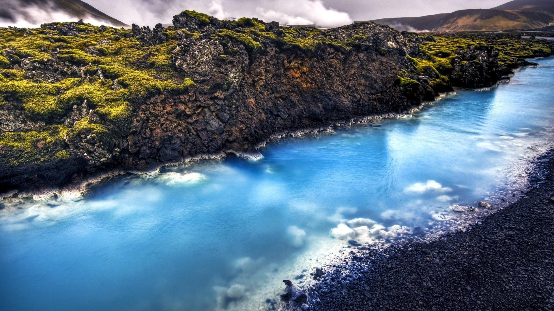 Dağın arka planına karşı şeffaf göl