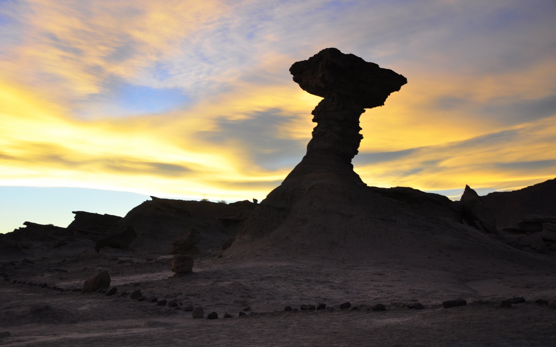 Gün batımının inanılmaz güzelliği. Gün batımının arka planında kayalar