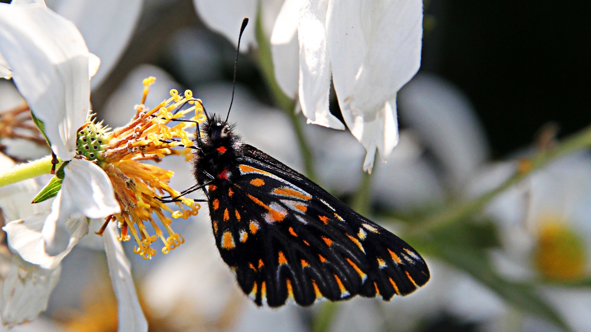 Beyaz bir çiçeğin üzerinde güzel bir kelebek