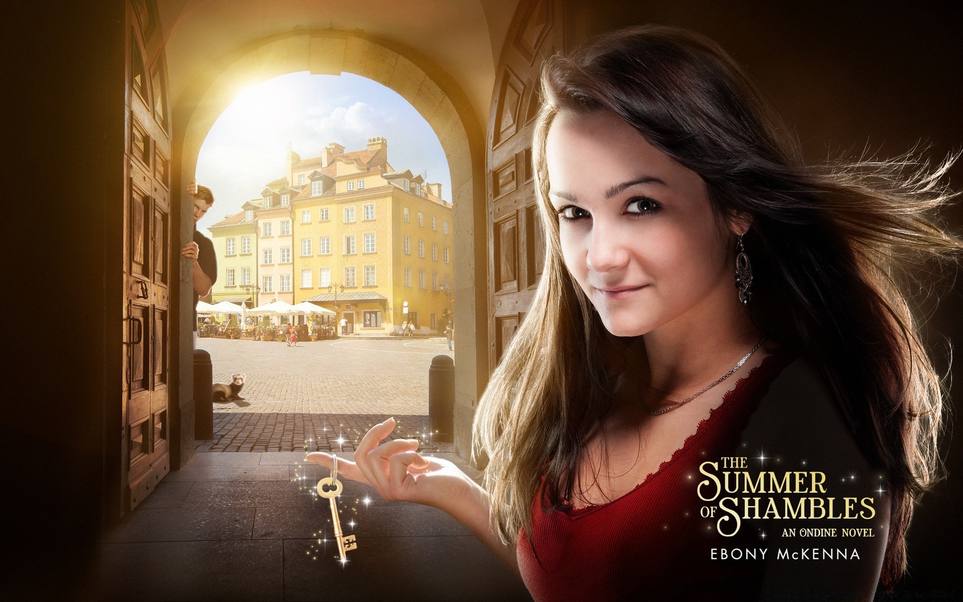 Parmağındaki anahtarla kemerli kız