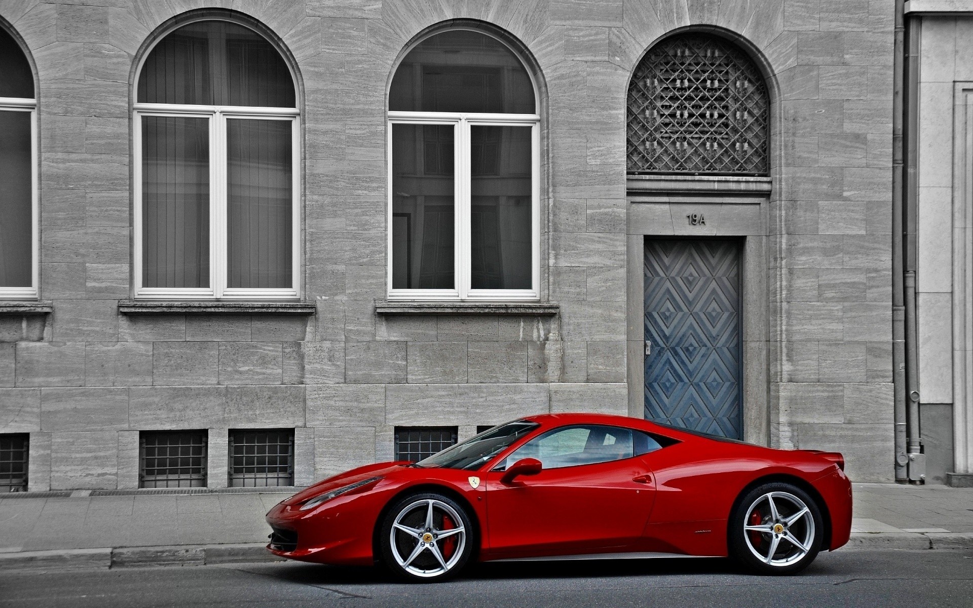 Evin verandasında nadir bulunan kırmızı bir araba duruyor