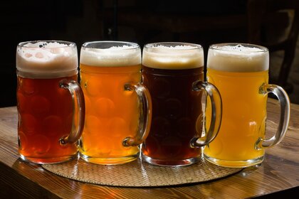 Farklı bira türlerine sahip dört bira bardağı