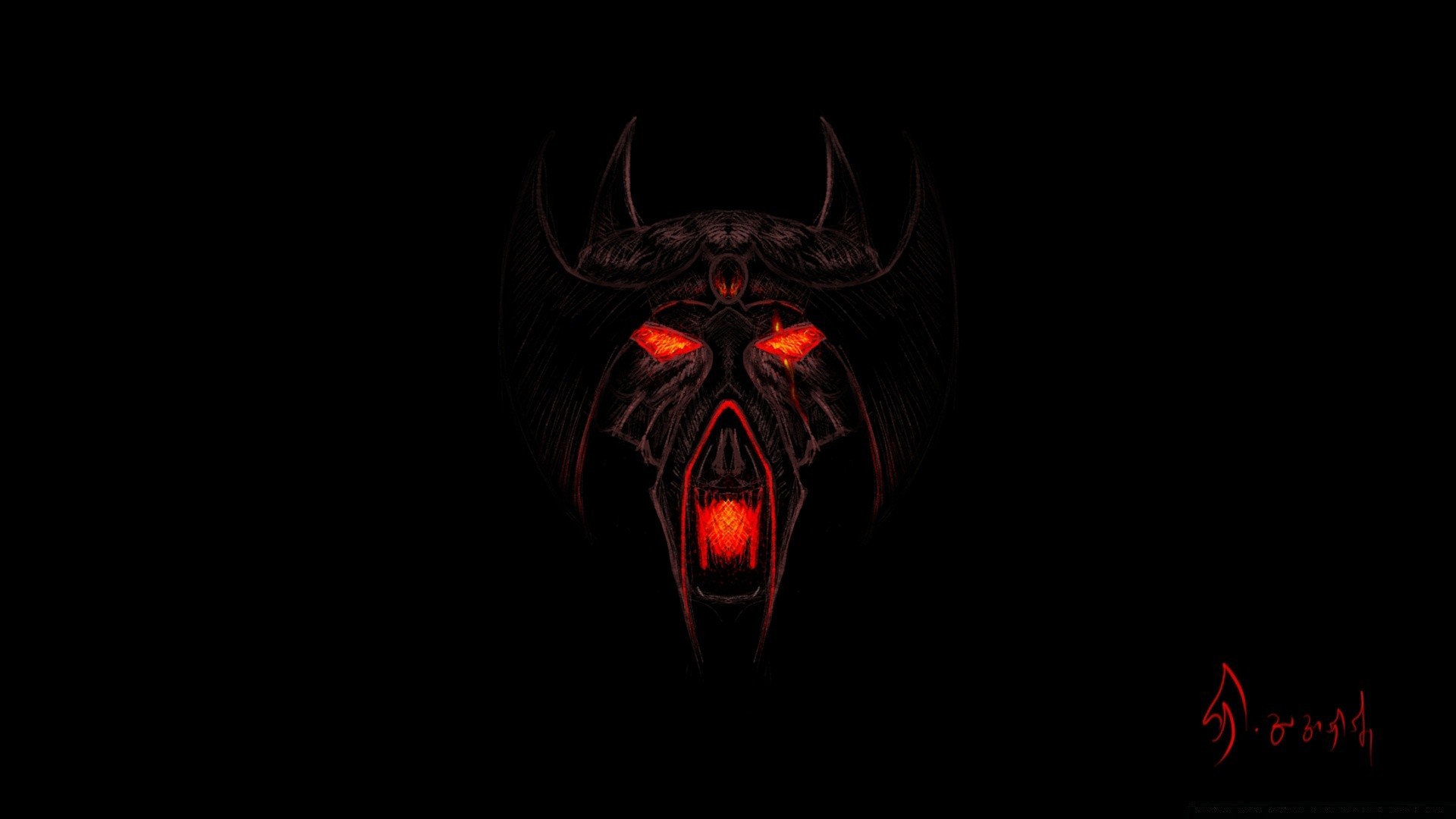 Karanlıkta yanan gözler ve kırmızı ağız
