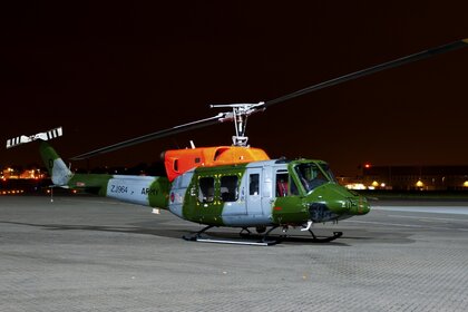 Helikopter havaalanında duruyor, uçuşa çıkmayı bekliyor