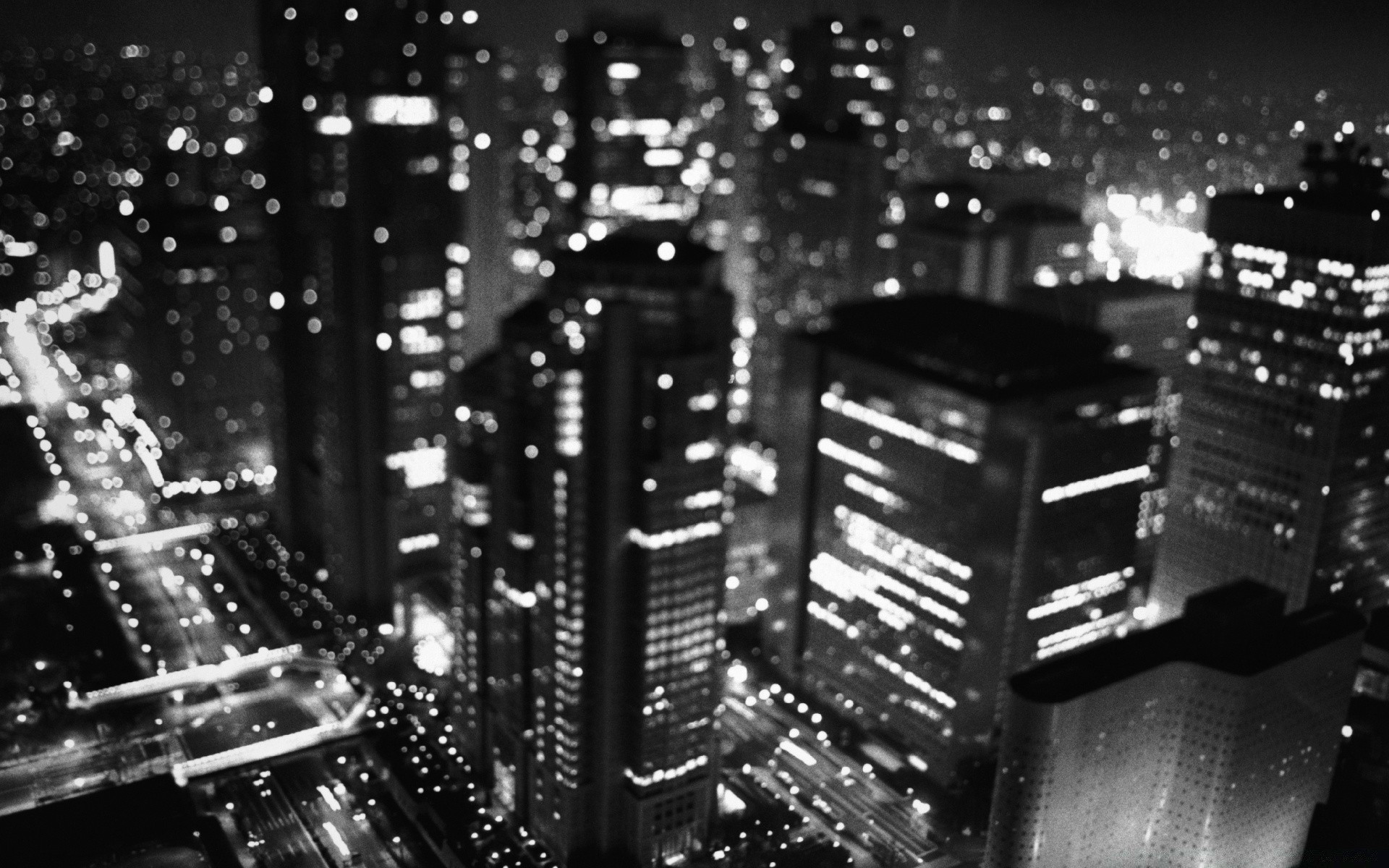 Gökdelenlere sahip büyük şehir siyah beyazdır