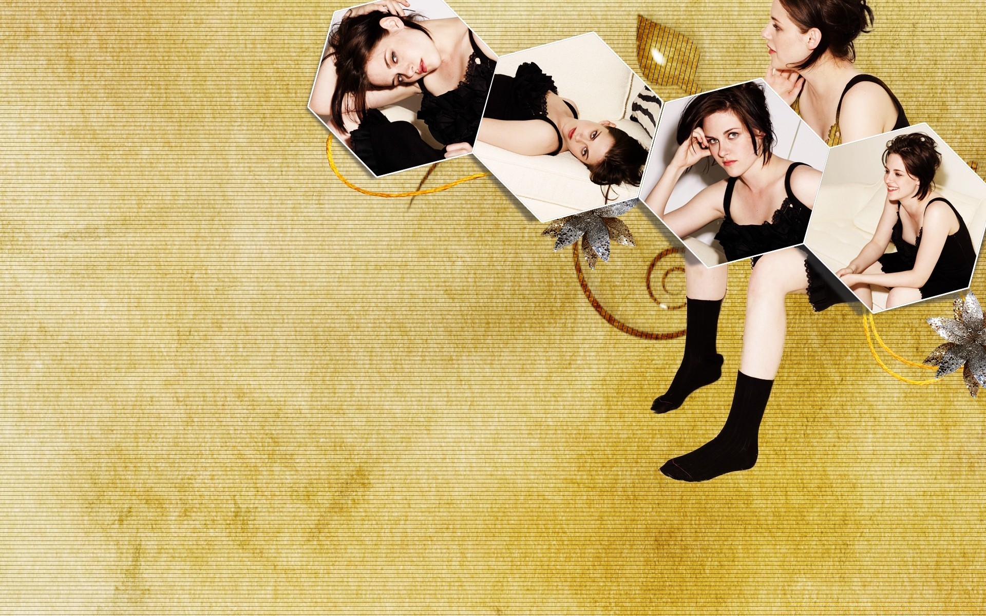 Peteklerde siyah çoraplı aktris