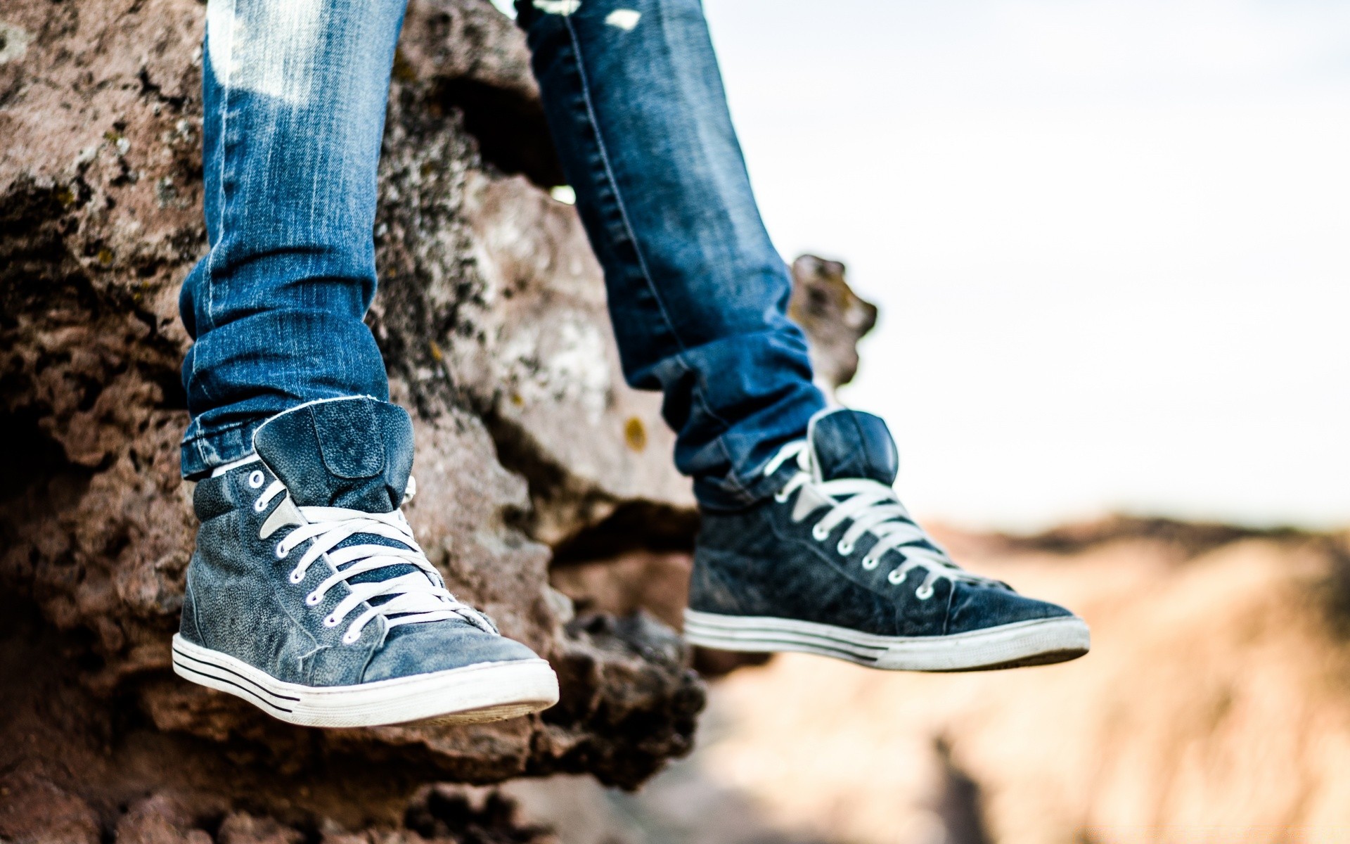 Siyah ve beyaz tonlarında ayaklarındaki spor ayakkabılarSiyah ve beyaz tonlarında ayaklarındaki spor ayakkabılar