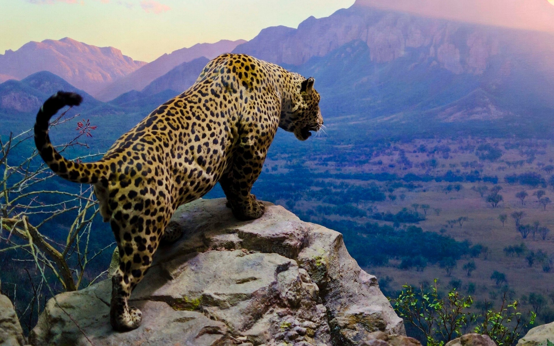 Bir leopar avını taştan yüksek bir kayaya kadar avlıyor