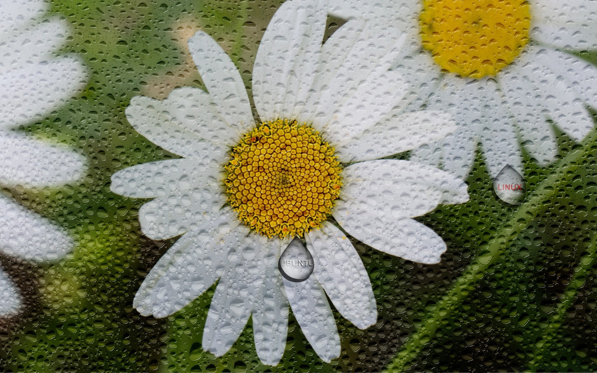 Boyalı papatya, yaprakları üzerinde bir damla çiğ