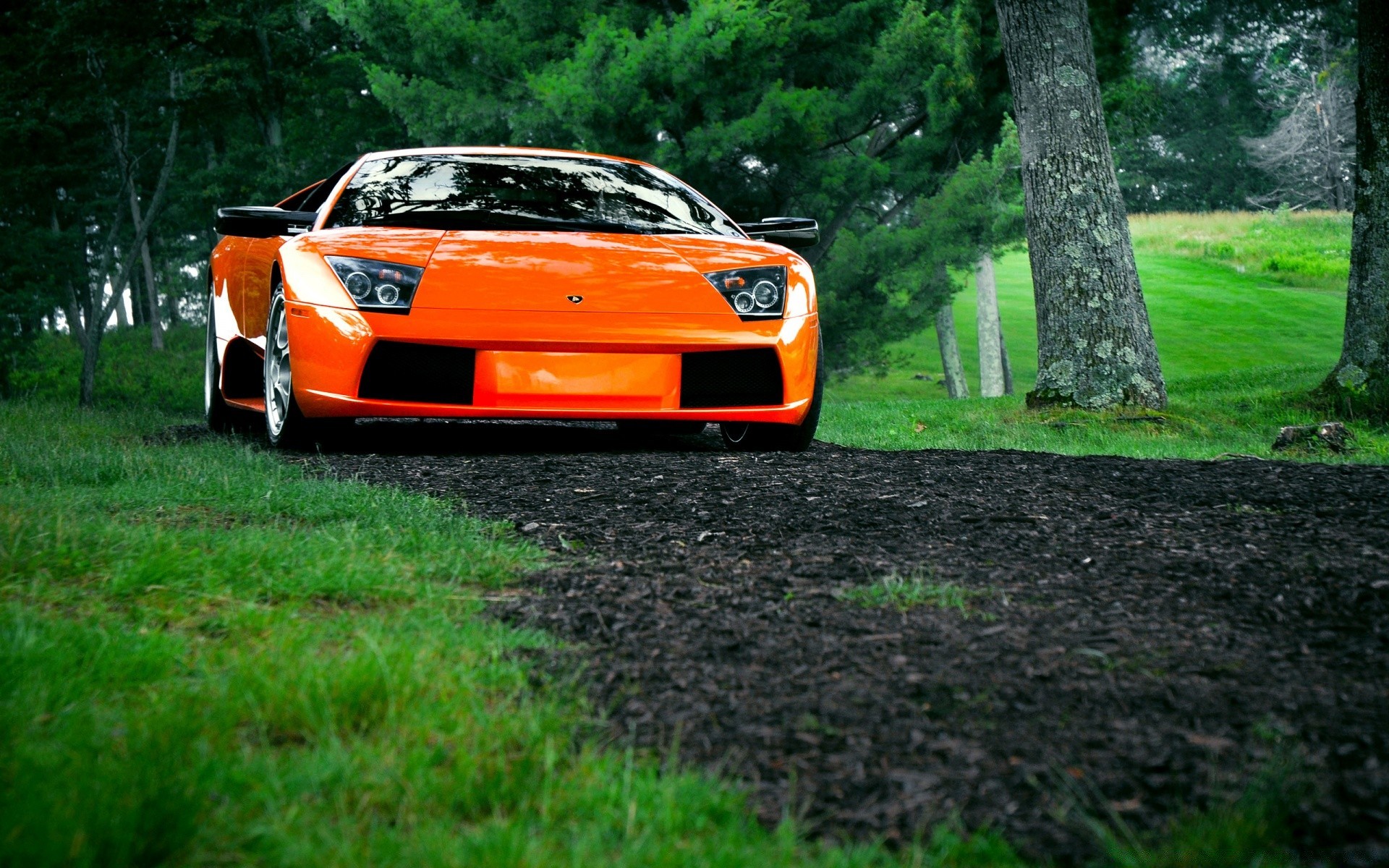 Çimlerin üzerinde portakal Lamborghini