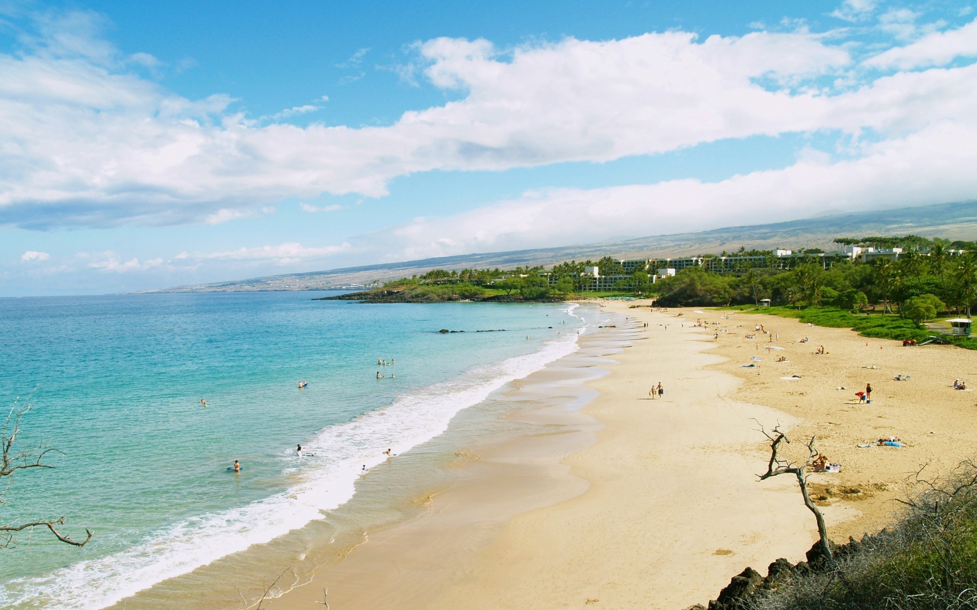 Palmiye ağaçlarının ve mavi gökyüzünün arka planında deniz kıyısıPalmiye ağaçlarının ve mavi gökyüzünün arka planında deniz kıyısı