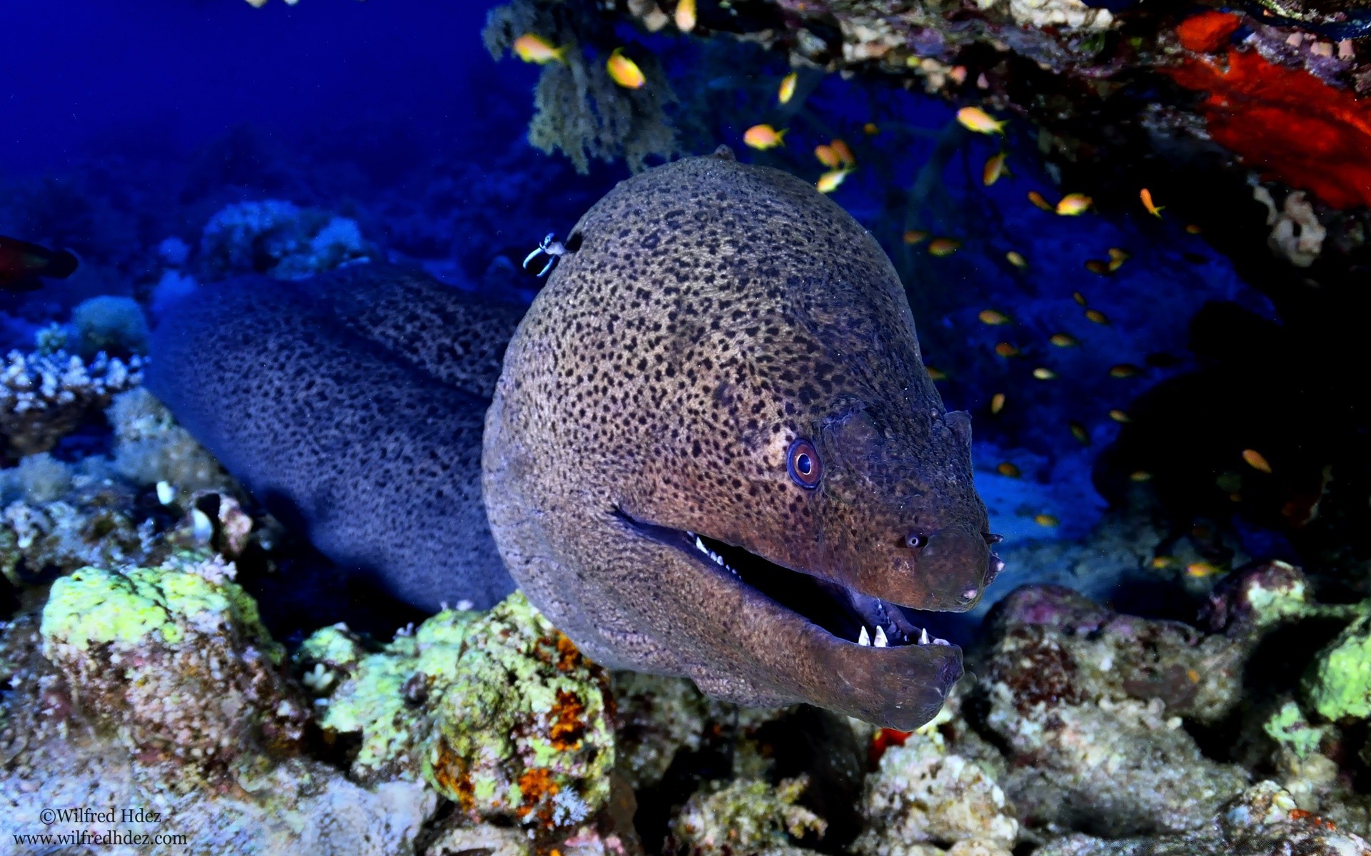 Mavi lekeli balık mercan resifinin sualtı sakinleri