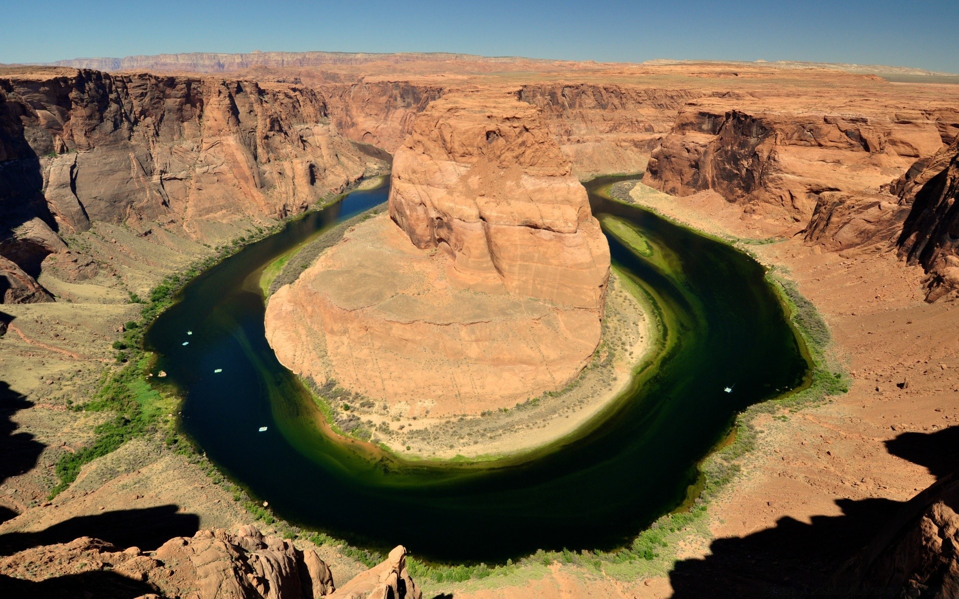 Nehrin yeşilimsi suyu kanyonun yuvarlak enkazının etrafında akıyorNehrin yeşilimsi suyu kanyonun yuvarlak enkazının etrafında akıyor