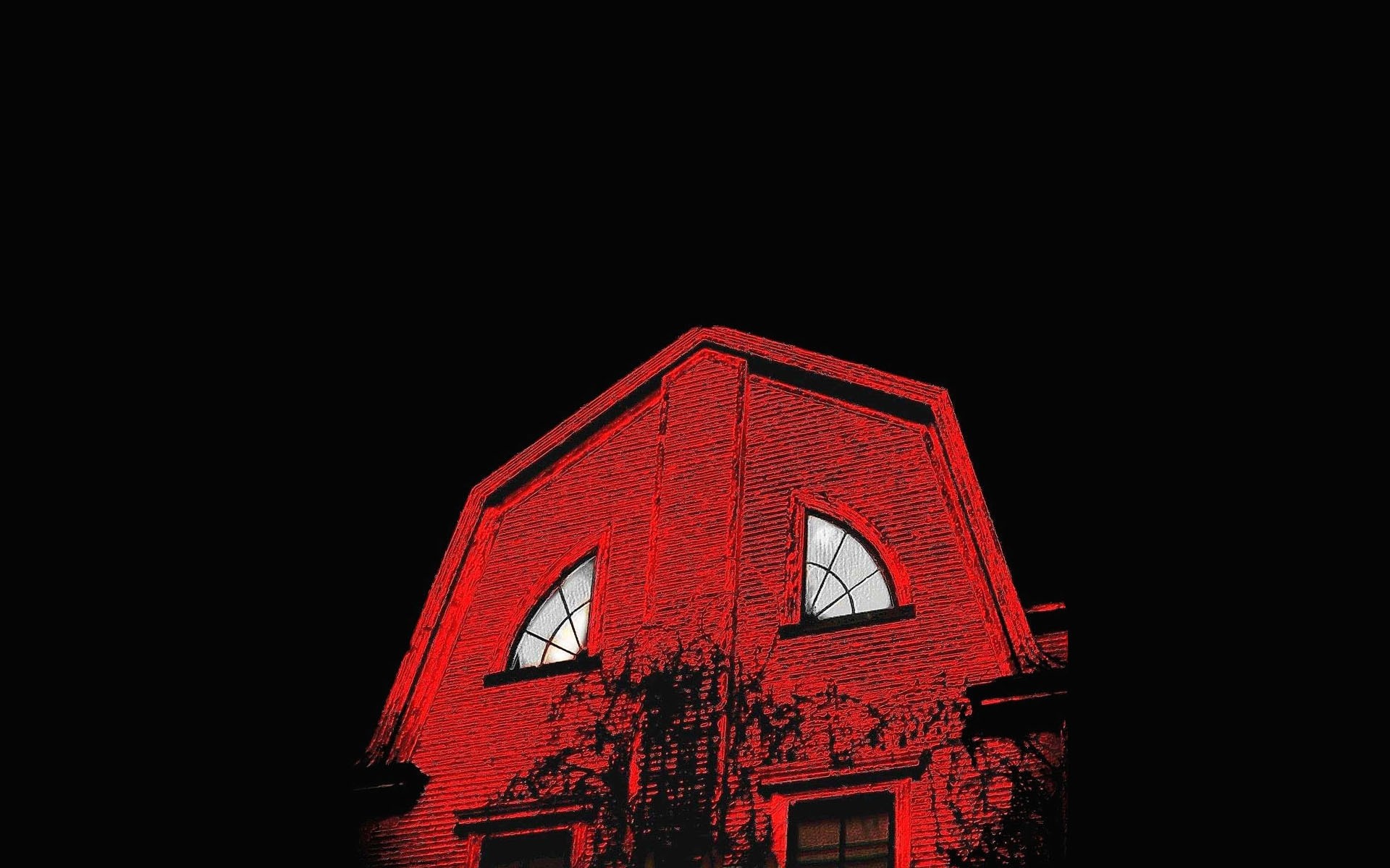 Karanlık bir arka plana karşı mimari kırmızı ev