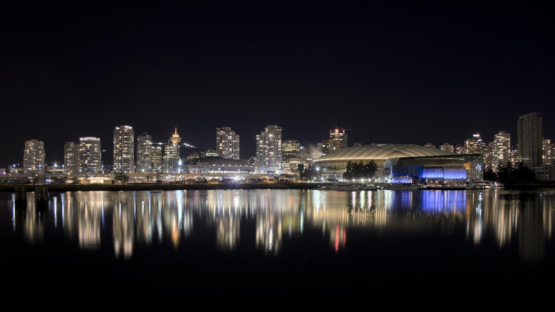 Geceleri parlak bir şekilde aydınlatılmış bir metropol