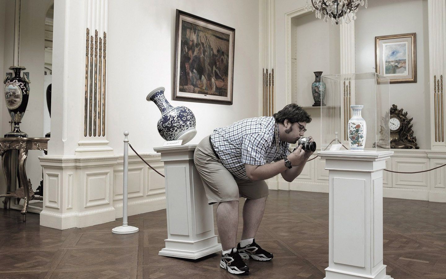 Müzede serginin çekiminin arkasındaki fotoğrafçı