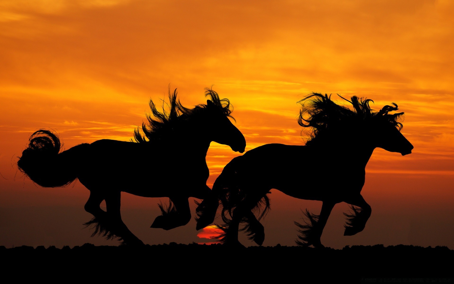 Karanlık gökyüzünün arka planına karşı beyaz at