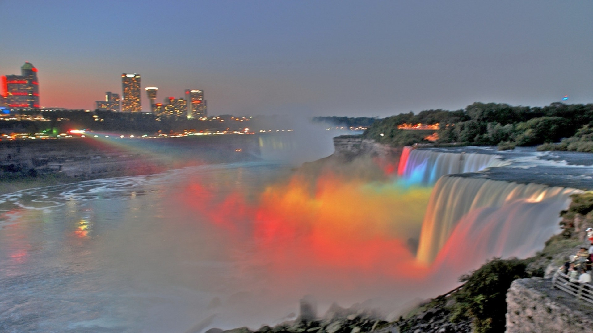 Renkli ışıkta Niagara Şelalesi