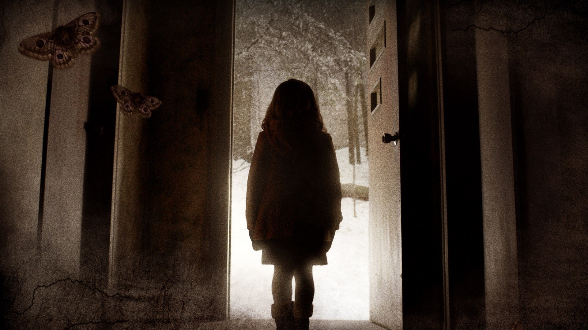 Açık kapının arka planında yalnız bir kız figürü
