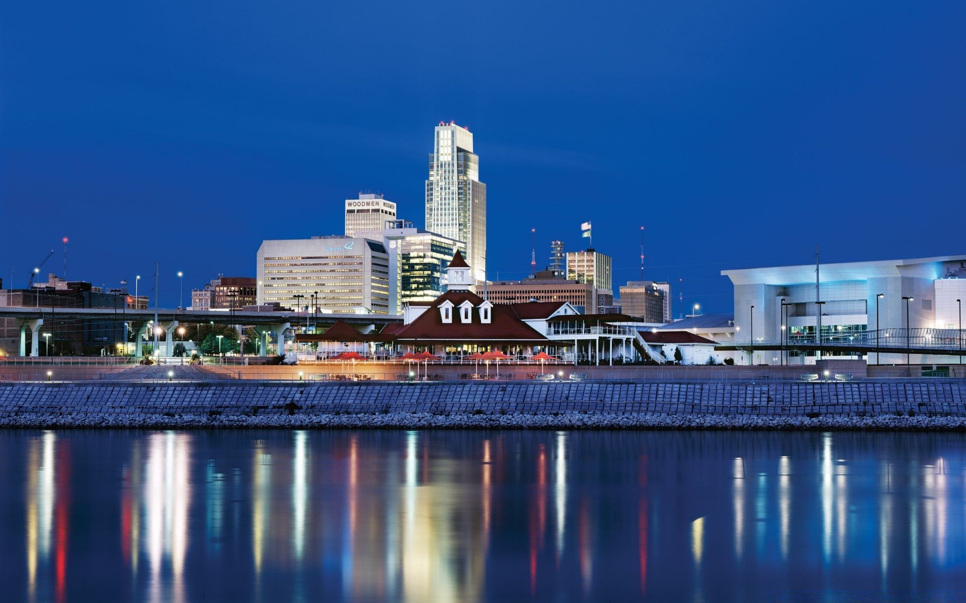 Nehrin yanındaki gece şehri görünümü