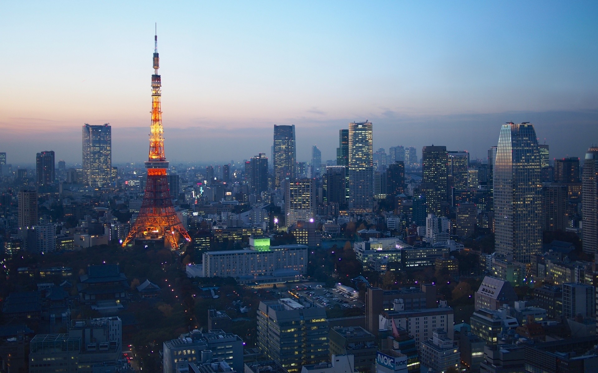 Akşam alacakaranlıkta büyük şehrin ışıkları