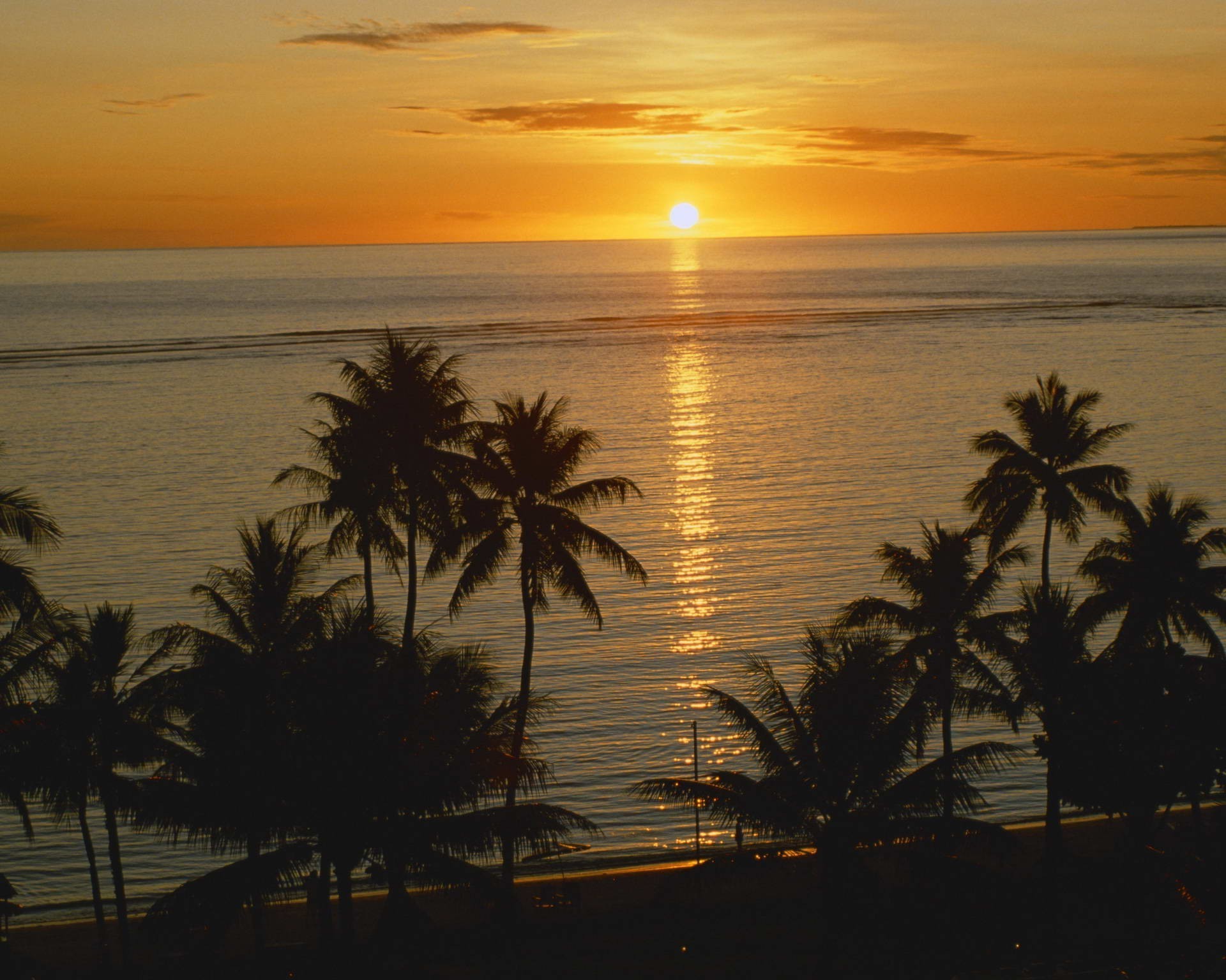 Tropikal gün batımı, kum plajı