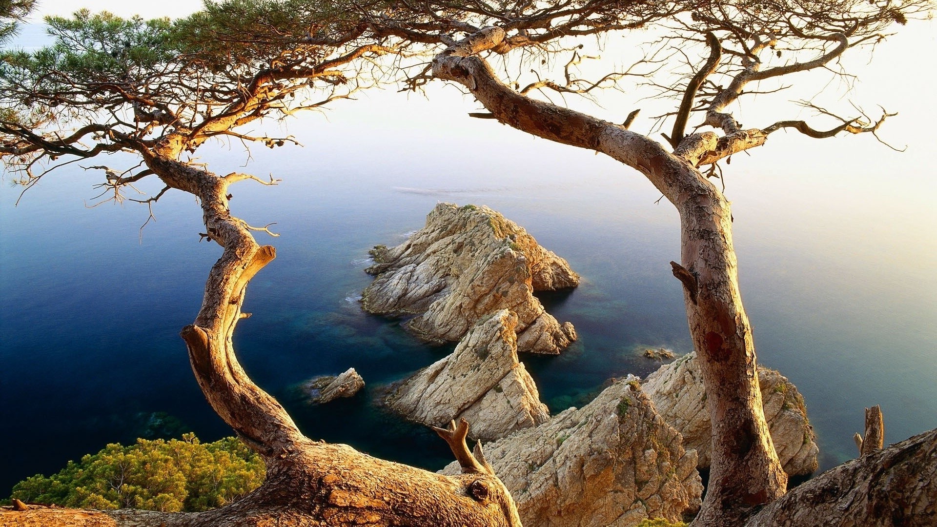 Doğa, kayaların ve kayaların üzerindeki ağaç