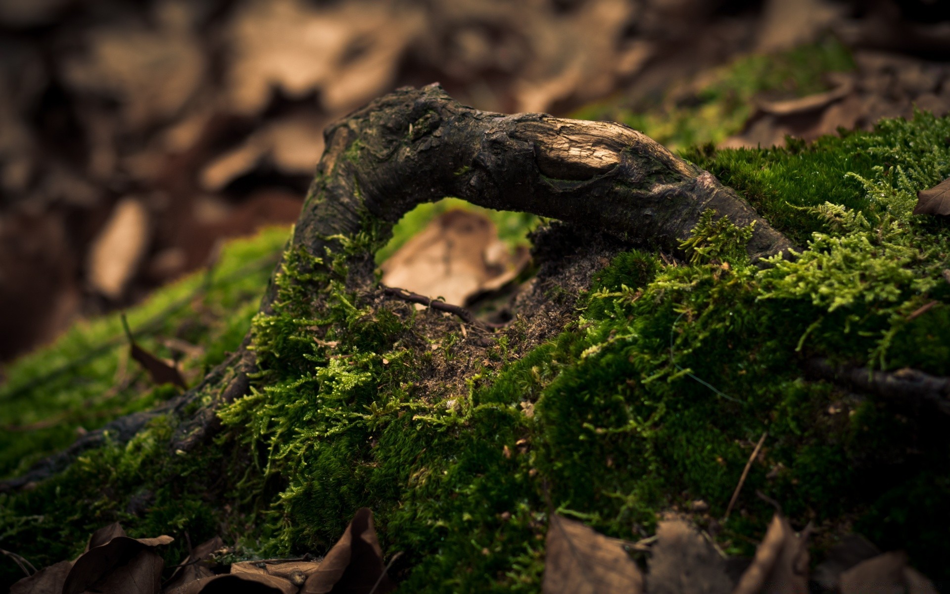 Uzun zamandır düşmüş, yosunla kaplı bir ağaç