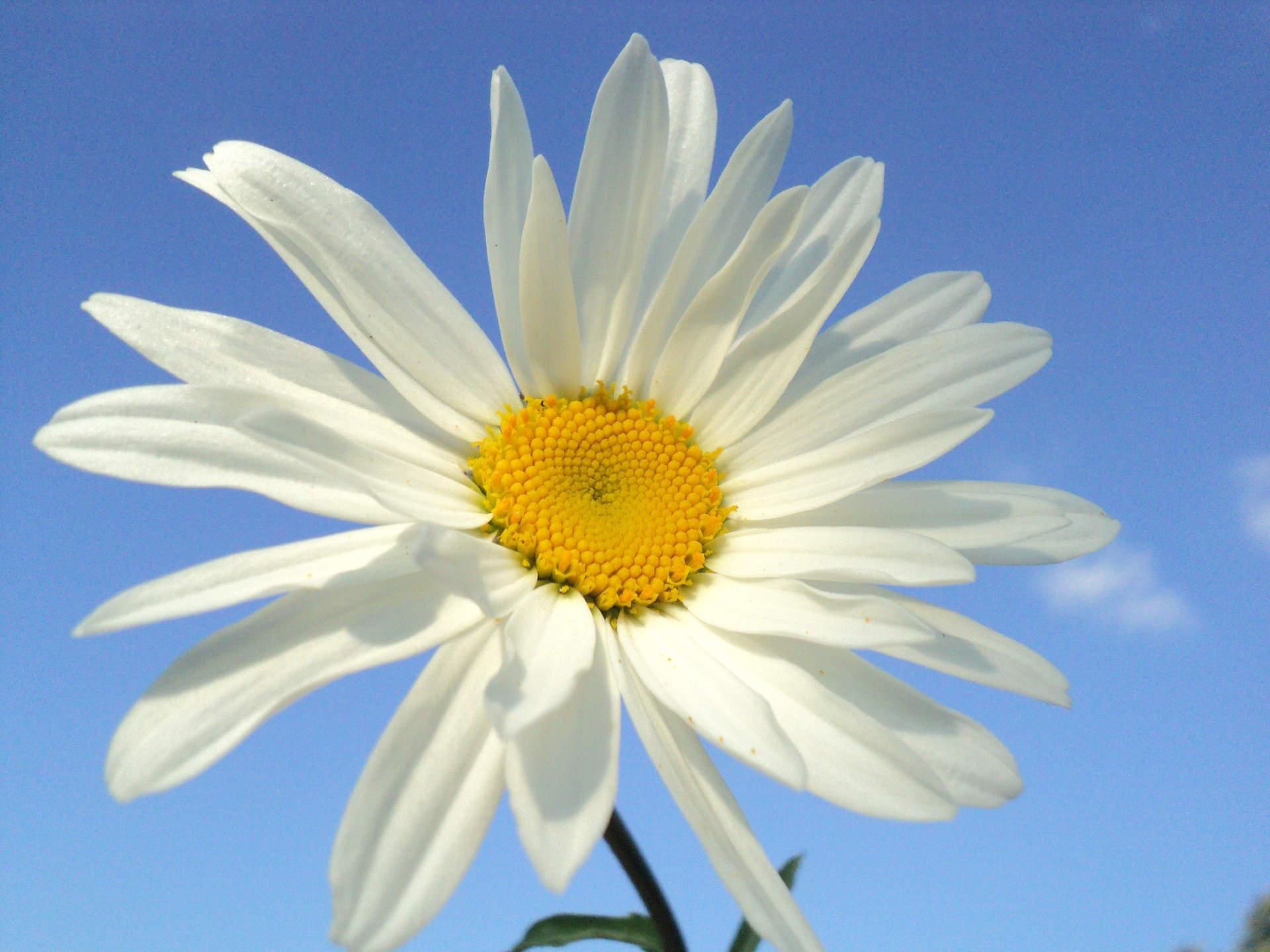 Beyaz bir arka plan üzerinde parlak bir papatya yaprağıBeyaz bir arka plan üzerinde parlak bir papatya yaprağı