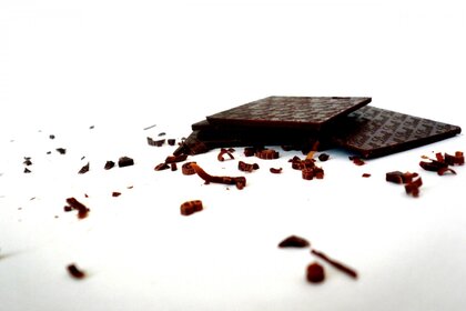 Beyaz zemin üzerine çikolata parçalarının natürmortuBeyaz zemin üzerine çikolata parçalarının natürmortu