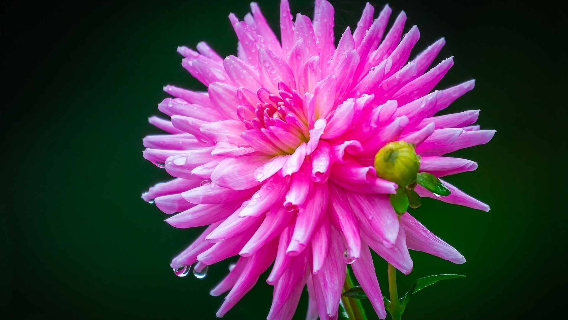 Yeşil bir arka plan üzerinde parlak pembe dalya