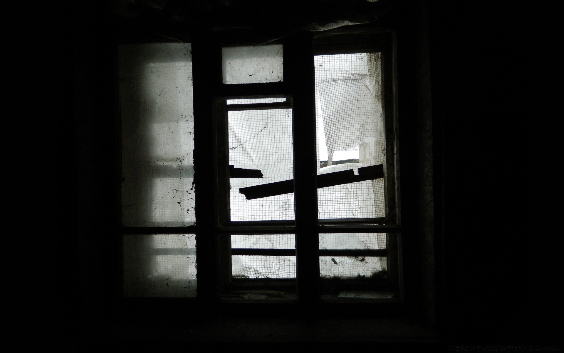 Terk edilmiş bir evin kırık penceresi