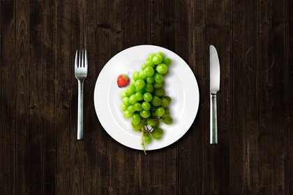 Vejetaryenin kahvaltısı. Sağlıklı yiyecekler. Bir tabakta üzüm