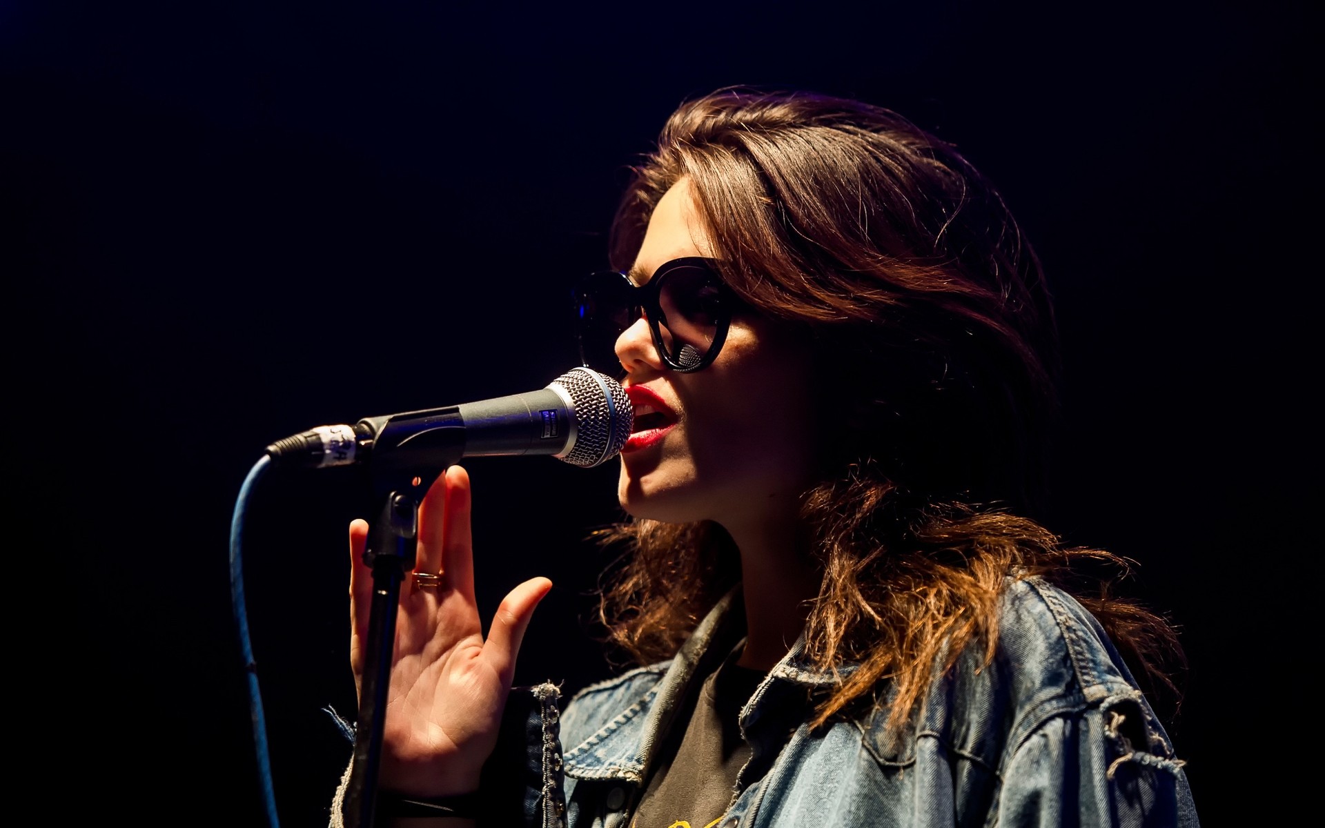 Mikrofonlu müzisyenin kızının konser fotoğrafı