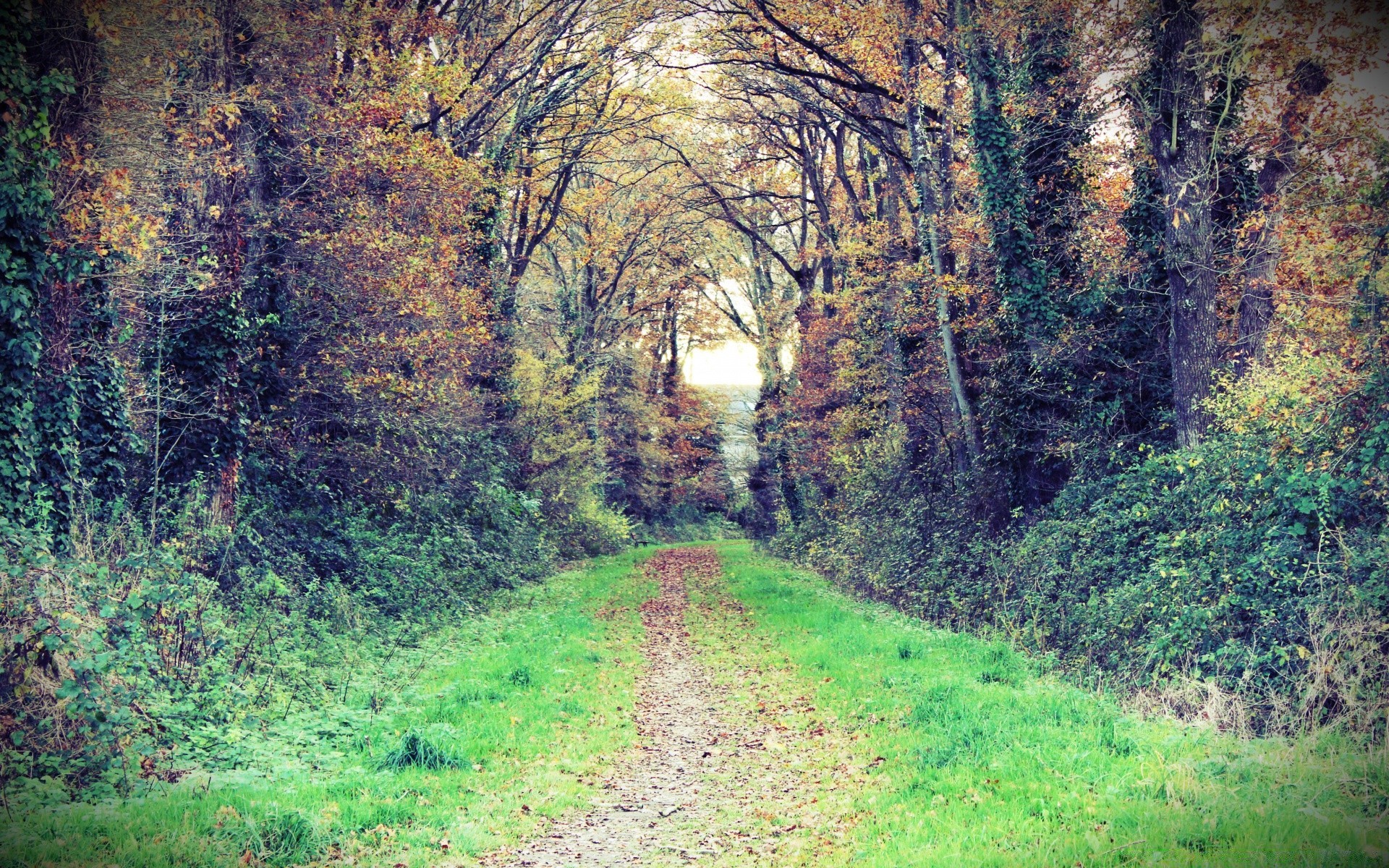 Parka giden yol güneş ışınlarıyla aydınlatılmış