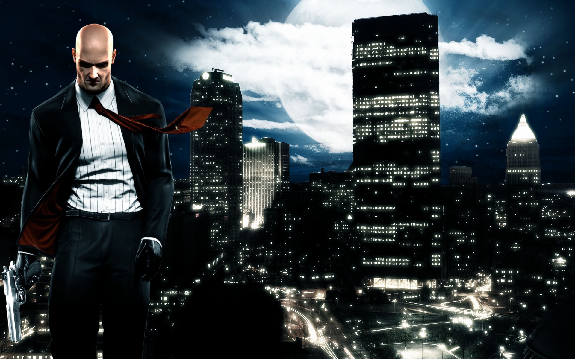 Gece kasabasının arka planında kel bir adamın oyunundaki resim