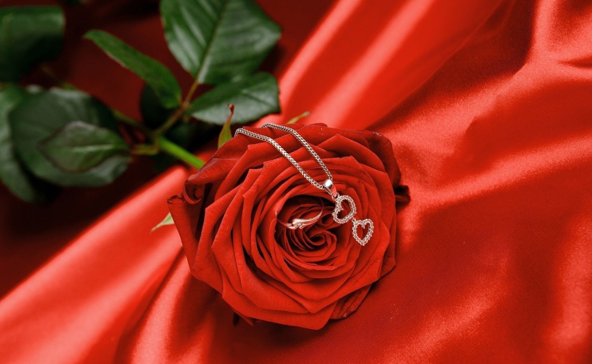 Kolye ile kırmızı kumaş üzerine gül