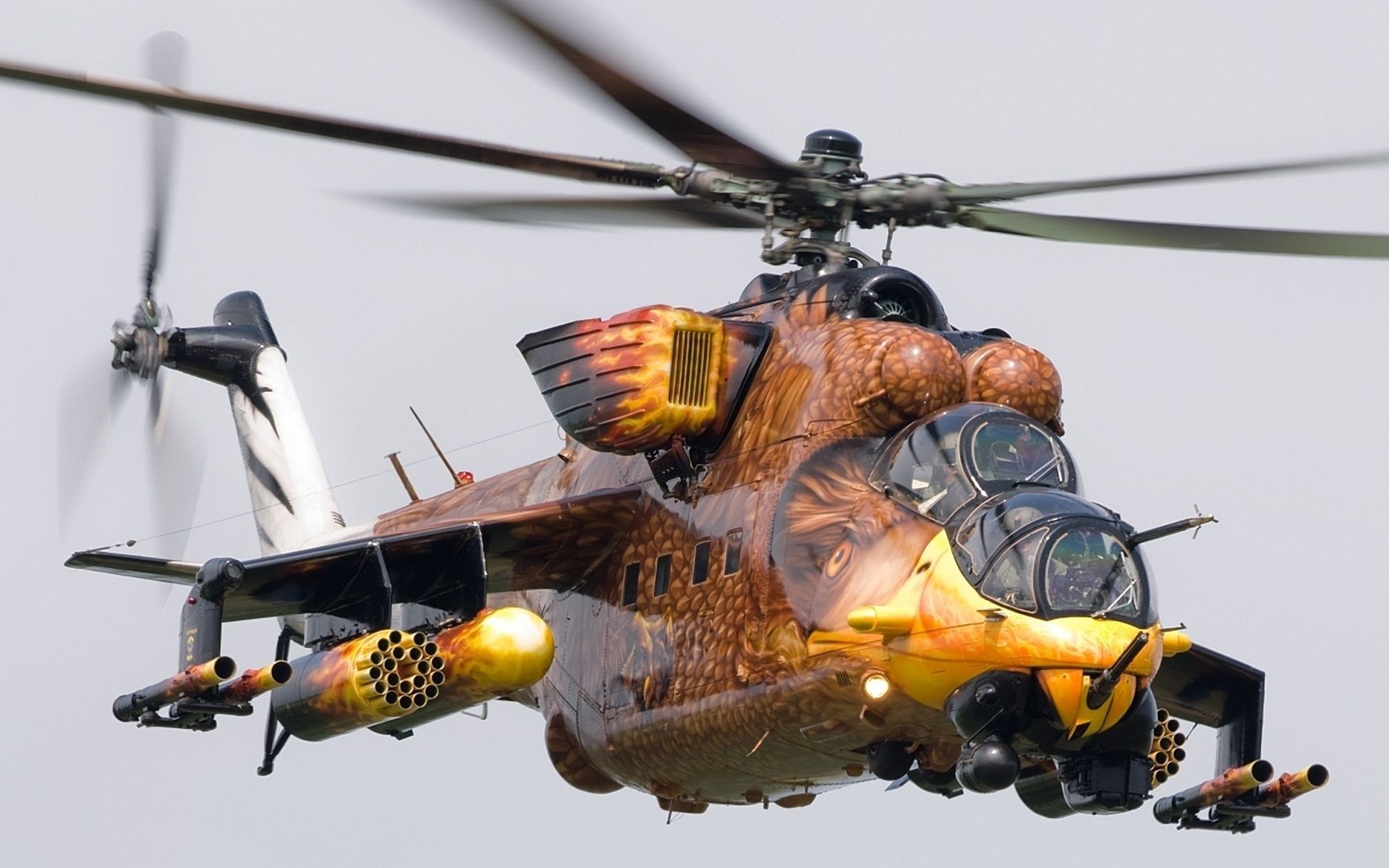 Parlak beyaz-turuncu helikopter havada asılı kaldı