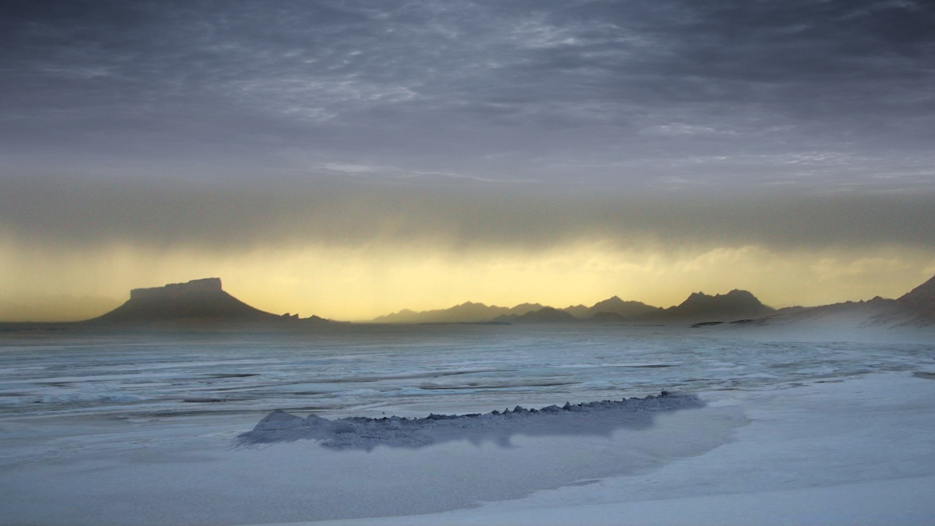 Denizin dalgalarının üzerindeki kasvetli gökyüzü