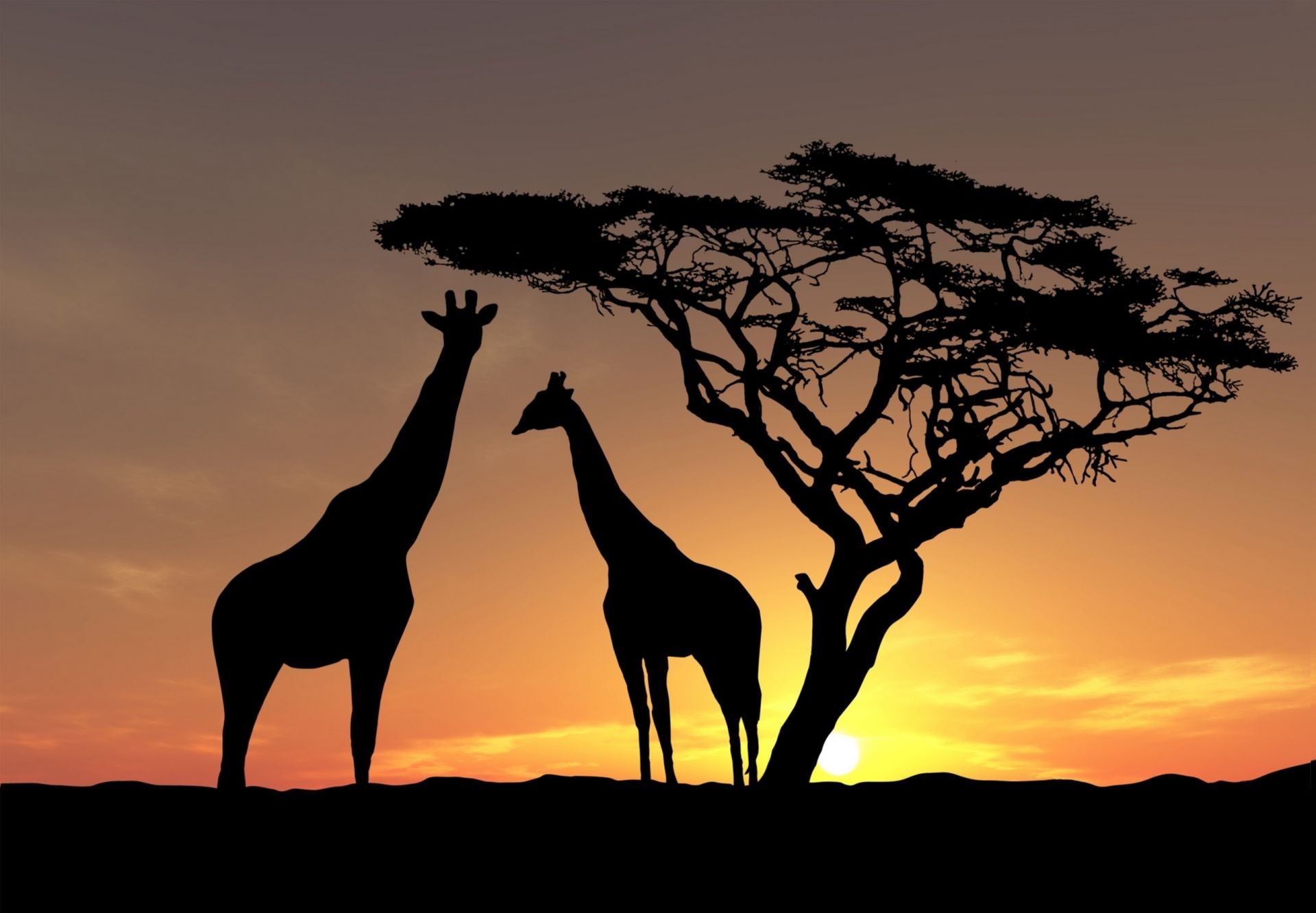 Afrika'da gün batımında zürafalar