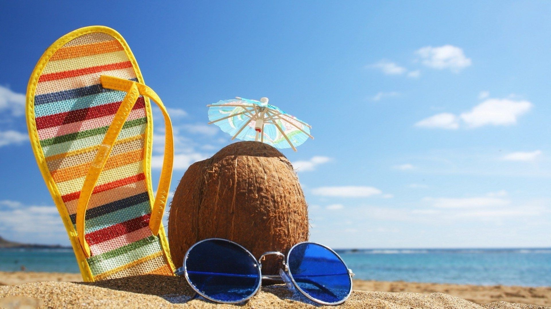 Deniz plajının arka planında gözlükler
